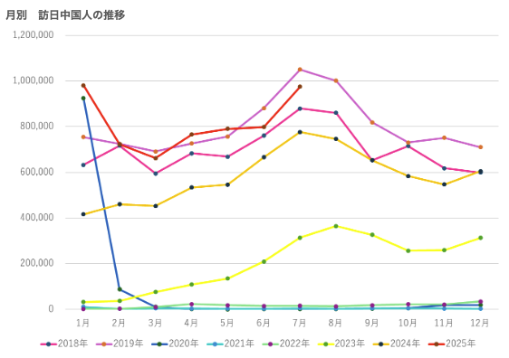 訪日外国人観光客は年々増加しており、その中でも中国人観光客は依然として大きな存在感を示しています。